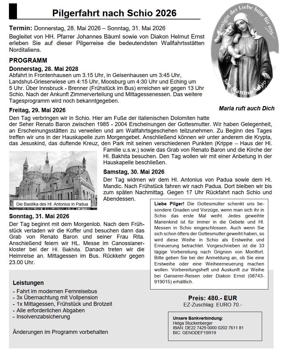 Pilgerfahrt nach Schio